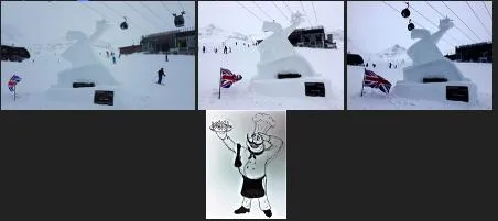 Whilst on holiday snowboarding in Ischgl Austria 2000, Justin was getting bored of going up & down the slopes. On the Tuesday in his hotel Olympia in the evening, he saw an older man late 70s with red bomber jacket covered in badges, hat full of shiny hat pin badges. Order a full bottle of scotch whisky, & down a slug "Excuse me sir, what's up..?" Justin asked with an air of concern, “My name is Camilian Belanger I've come here to make snow sculptures, & Inglebert who does not sing as he is ill! I can not complete my sculpture. I have failed Ischgl, I have failed Canada" and with that, he took another slug of whisky.